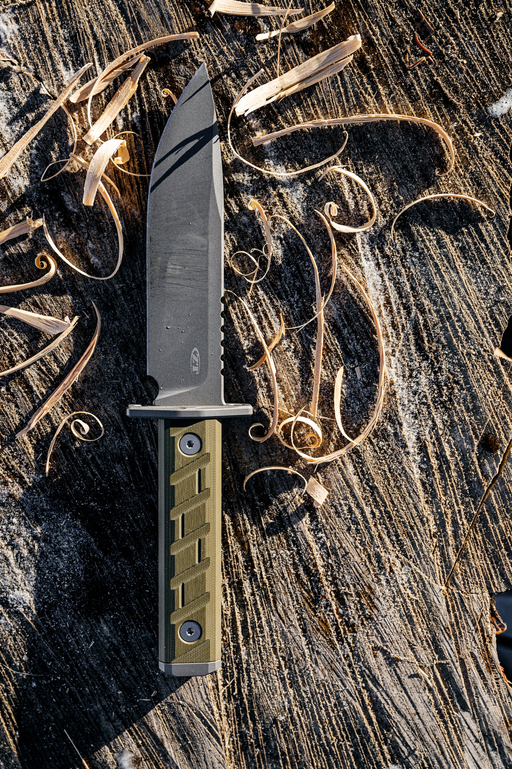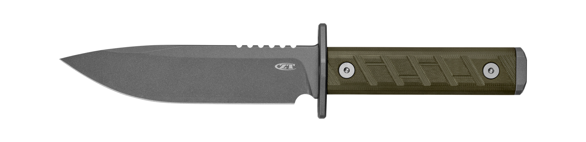 Whether it’s for survival, the great outdoors, or summer projects, the military inspired 0006 is the answer. Though it pays homage to the original ZT-9 with a steel guard, this full-tang beast is not a bayonet. Instead, this versatile ZT fits snugly in a durable Kydex sheath for travel. Named after its 6-inch blade, the 0006 uses CPM 3V, a tough tool steel that resists edge chipping during the hardest work tasks. While this non-stainless steel wasn’t designed for corrosion resistance, ZT added a clear Cerakote coating for greater durability. It’s a thick blade at 3/16 inches, but still plenty functional. The rounded profile fills the hand without being too big, and an olive G10 handle offers comfortable grip. Choke up on the aggressive jimping with or without gloves for greater control. When ZT makes a fixed blade, there’s nothing else like it. The 0006 is no exception.