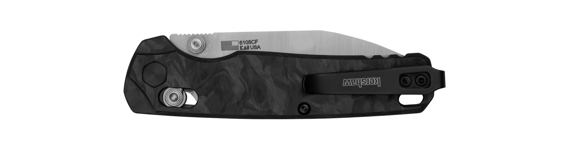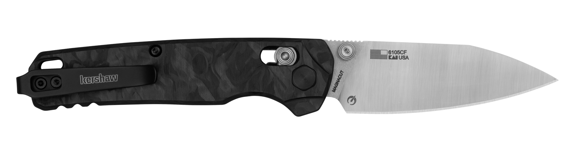 You deserve the best; that’s why this Bel Air is going all premium. That includes marbled carbon fiber, a strong, light, and detailed handle material. Hold it comfortably and take advantage of unmatched smoothness thanks to manual KVT ball bearings and DuraLock technology. The crossbar secures it in place, and when closing, pull back the handle button to drop the blade shut. Cutting wise, the MagnaCut reverse tanto blade uses a full flat grind for sharp EDC performance, and the two-tone finish adds to an already stunning design. Put away the slim profile using the reversible deep-carry pocketclip. It won't stay stored for long; you'll search for ways to use and admire the Bel Air - Carbon Fiber again.