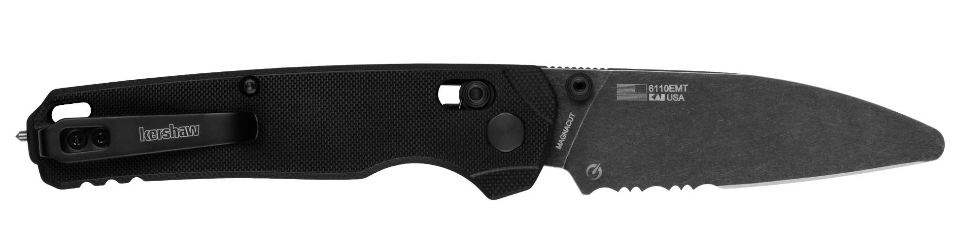 • Blunt tip and partially serrated edge optimized for cutting seatbelts and rope without accidental punctures
