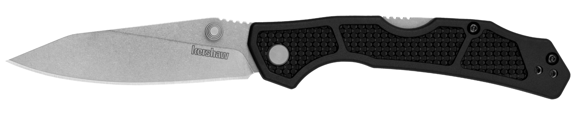 • Kershaw mid-lock folder; comfortable, textured glass-filled nylon handle