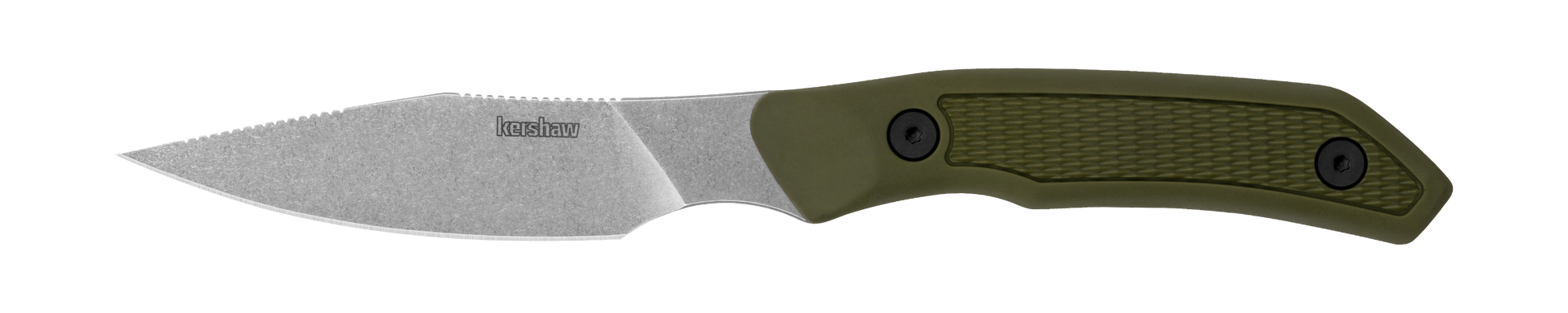 Kershaw makes processing wild game easier with the Deschutes β Caper fixed blade. The full-flat grind D2 blade is ideal for slicing around the head and neck area of the animal. Its ergonomic handle is contoured for comfort during this precise detail work. Polypropylene adds durability, while an olive rubber overlay gives hunters maximum grip. Choke up on the finger choil and use the thumb ramp for greater control. The Deschutes β Caperβs included sheath retains the blade during travel, while making it easy to remove the knife. This specialty Kershaw proves a worthy tool during your next hunt.