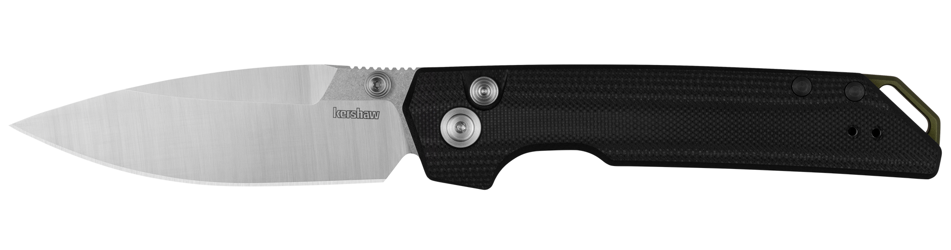 • Contoured G10 handle with inset liners for grip and balance; olive backspacer