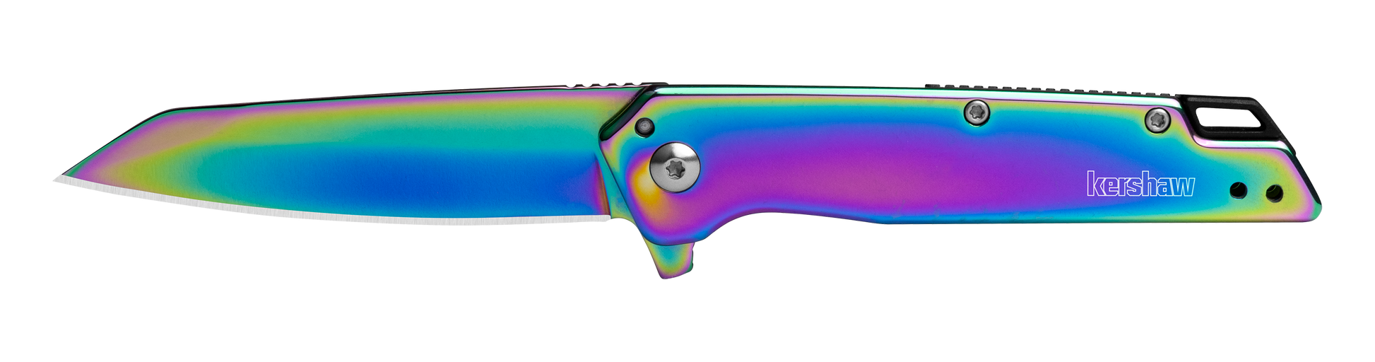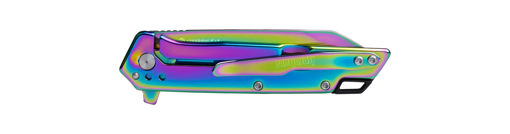 - Starter Series everyday carry folder; eye-catching, rainbow PVD blade and handle finish