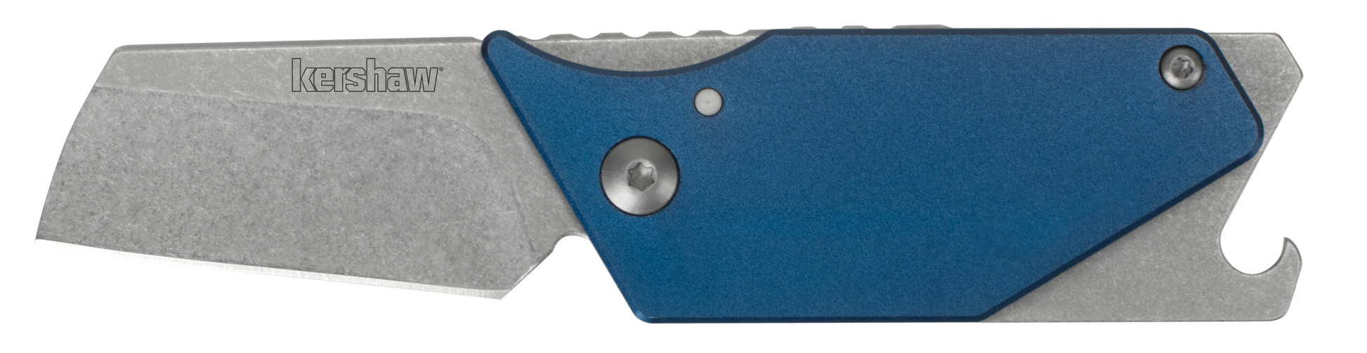 Designed by Belarusian custom knifemaker Dmitry Sinkevich, the Kershaw Pub is the handiest keychain knife ever. Closed, you’d never know there was a handy blade inside—although you would definitely notice the convenient bottle opener. You might also note the slotted screwdriver tip right next to the bottle opener. To reveal the blade, just push down on what looks like the key ring attachment. The blade is a modified sheepsfoot with a straight edge and clipped tip.