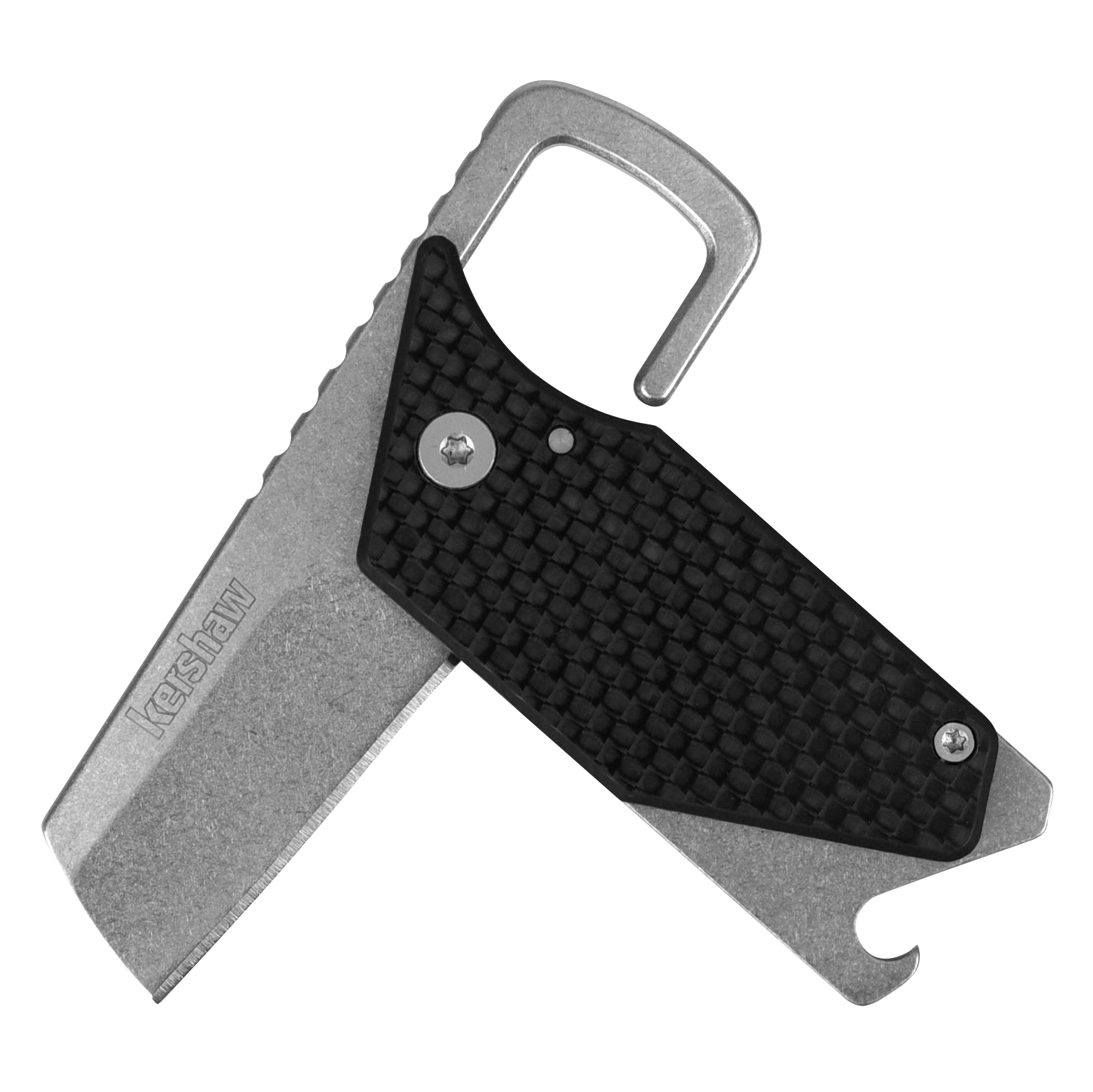 - This multifunction mini knife has a blade, bottle opener, flat head screwdriver/pry bar, and key chain attachment