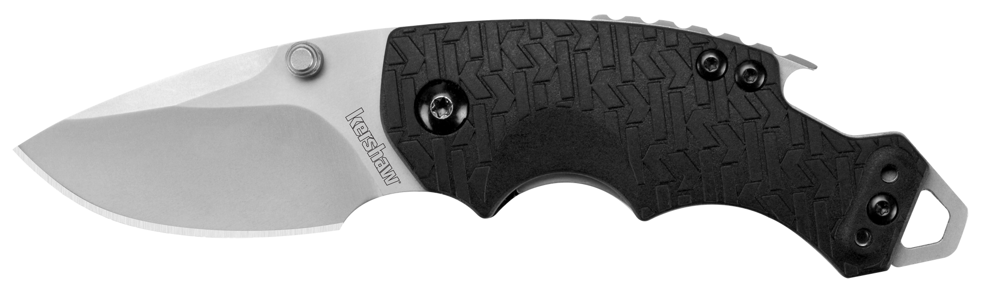 Once you get your hands on this handy little knife, you'll see how nicely the finger contours fit your hand, how useful that stubby little blade really is, and how Kershaw's K-Texture on the handle provides an extra secure grip. But this multifunction tool also has a flathead screwdriver at the butt of the knife, which doubles as a lanyard attachment. There’s even a handy bottlecap lifter built into the back of the knife.